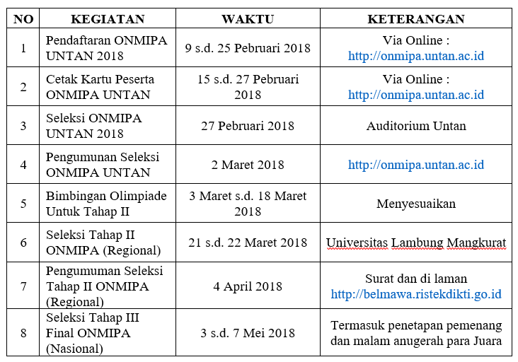 Pendaftaran ONMIPA Untan 2018 telah dibuka.