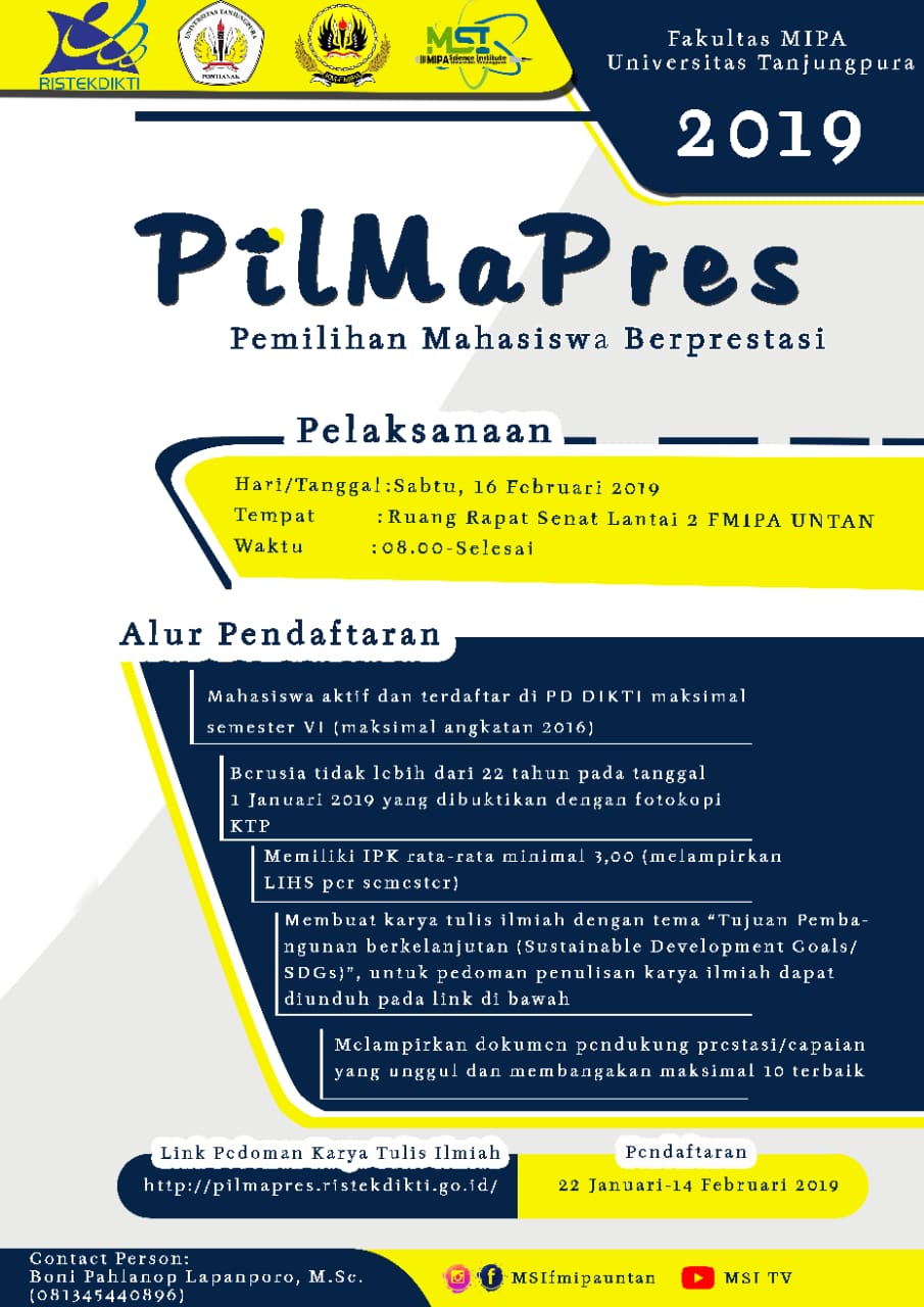 Pendaftaran Pemilihan Mahasiswa Berprestasi (PilMaPres) telah dibuka.