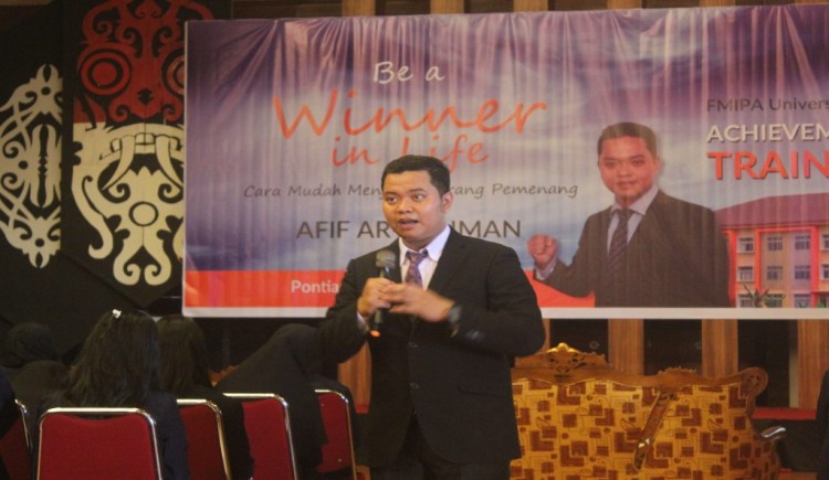Fakultas Matematika dan Ilmu Pengetahuan Alam Universitas Tanjungpura pada Minggu 10 Desember 2017 mengadakan Training One Day bersama Afif Ar-Rahman. Motivator muda berbakat yang didatangkan langsung dari Ibukota Jakarta. Bertempat di Aula Rumah Radakng Kalimantan Barat, training yang bertema “Be a Winner in Life” ini sukses membuat ratusan mahasiswa tercambuk motivasi. Kegiatan training dibuka langsung oleh Dekan Fakultas MIPA Afghani Jayuska, M.Si, dan dihadiri oleh Wakil Dekan Bidang Akademik Muliadi, M.Si, Wakil Dekan Bidang Umum dan Keuangan Neva Satyahadewi, M.Sc, Wakil Dekan Bidang Kemahasiswaan dan Alumni Dr. Rafdinal, M.Si, serta Kajur dan Sekjur di lingkungan Fakultas MIPA Untan.