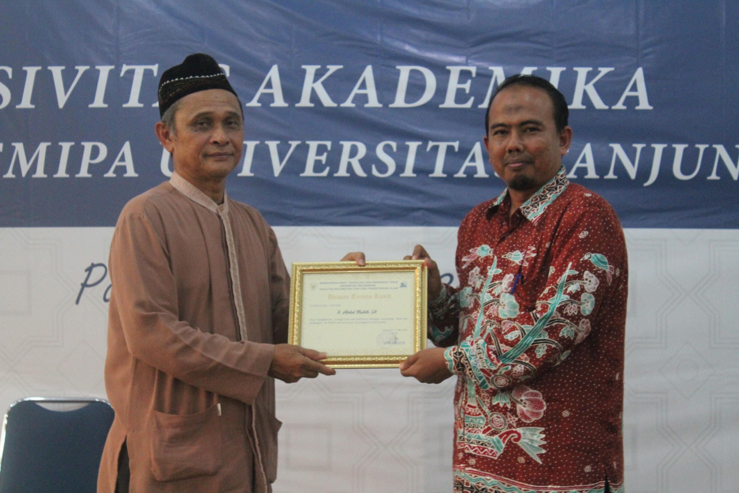 Fakultas Matematika dan Ilmu Pengetahuan Alam Universitas Tanjungpura mengadakan Buka Puasa Bersama Seluruh Civitas Akademika pada Jumat 17 Mei 2019 bertempat di Ruang Jurusan Fisika Baru Lantai 2 Gedung Baru. Acara ini dihadiri oleh Dekan Fakultas MIPA Bapak Afghani Jayuska, M.Si, Wakil Dekan Akademik Bapak Mulyadi, M.Si., Wakil Dekan Bidang Umum dan Keuangan Ibu Neva Satyhadewi, M.Sc, Wakil Dekan Bidang Kemahasiswaan dan Alumni Bapak Dr. Rafdinal, M.Si, Guru Besar Fakultas MIPA Bapak Prof. Thamrin Usman, DEA, para dosen, pegawai, dan mahasiswa-mahasiswa Fakultas MIPA Untan. Acara ini juga sekaligus merupakan pelepasan Kasubbag. Umum dan Keuangan Bapak Abdul Muhib, S.H yang telah mencapai batas masa bakti pada tanggal 1 Juni 2019.