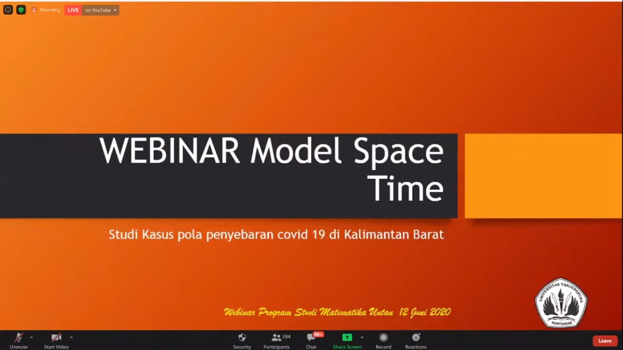 Hal ini melatarbelakangi terselenggaranya Web Seminar (Webinar) Series II Jurusan Matematika melalui Program Studi Matematika Fakultas Matematika dan Ilmu Pengetahuan Alam Universitas Tanjungpura (FMIPA UNTAN) Jumat (12/6). Seminar online melalui aplikasi Zoom dan live Streaming Youtube ini mengusung tema “Pola Persebaran dan Penanggulangan Covid-19 Menuju Era New Normal Di Kalimantan Barat” yang diikuti oleh 500-an peserta dari seluruh nusantara.