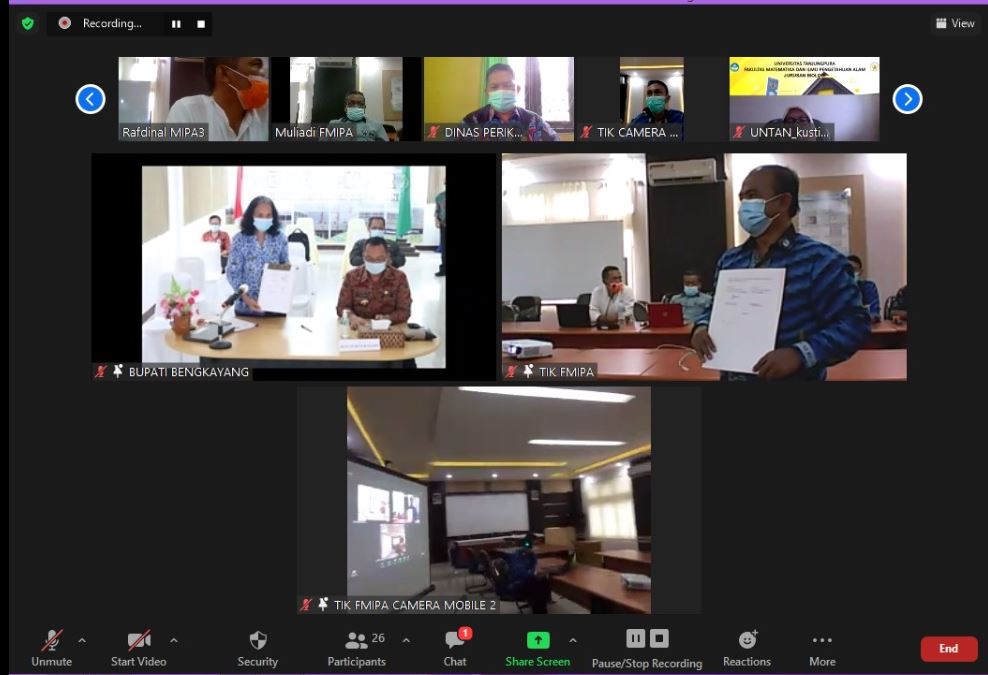 "Mewakili Pak Rektor yang hari ini sedang mengikuti Rapat Koordinasi Rektor se-Indoneisa, Kami menyampaikan apresiasi yang setinggi-tingginya untuk Pemda Bengkayang dan Fakultas MIPA Untan. Semoga kerja sama itu bisa memberikan manfaat yang sebesar-besarnya untuk kedua belah pihak," ucapnya dari Ruang Wakil Rektor via Zoom Meeting.