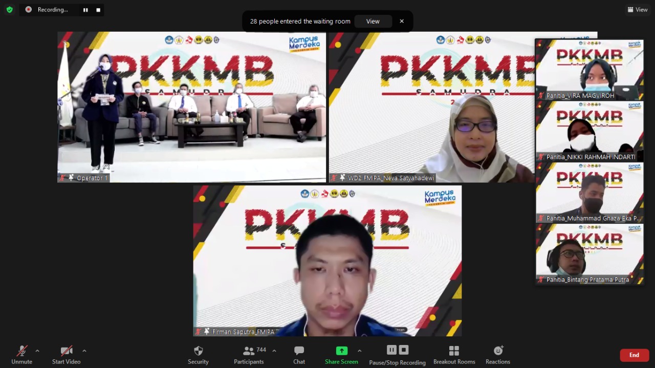 Fakultas Matematika dan Ilmu Pengetahuan Alam Universitas Tanjungpura (FMIPA Untan) gelar Pengenalan Kehidupan Kampus Mahasiswa Baru (PKKMB). Berlangsung daring, PKKMB SAMUDRA (Saintis Muda Tanjungpura) 2021 mengusung tema “Berakar dari Satu, Tumbuh dan Bersatu, Menuai Menyeluruh dari MIPA untuk Bangsa“, Kamis (12/8/2021).