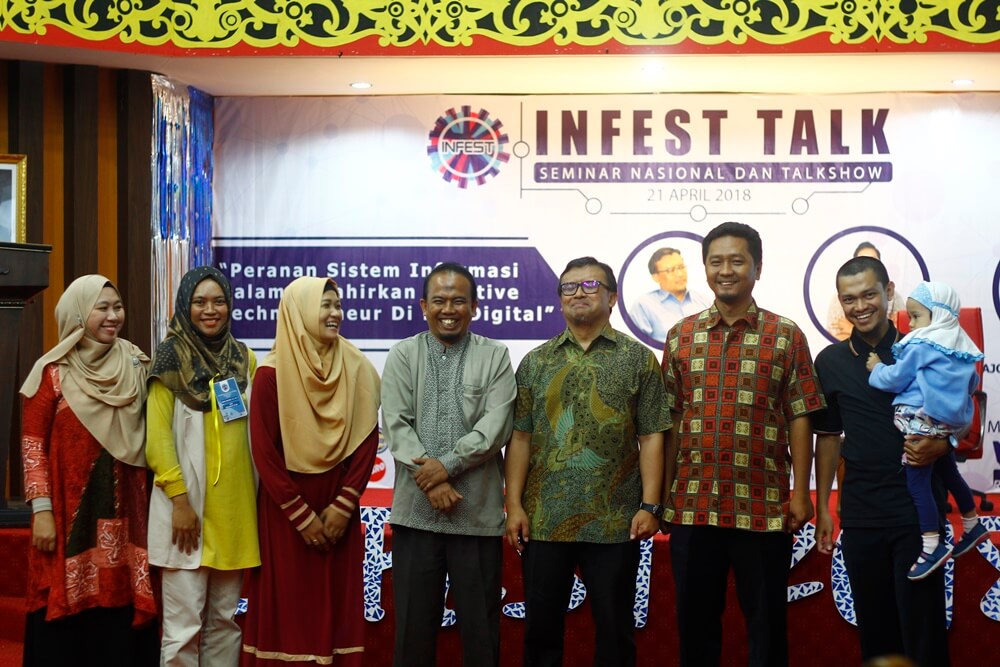Sabtu, 21 April 2018 telah dilaksanakan Seminar Nasional dan Talkshow yang diselenggarakan oleh Himpunan Mahasiswa Sistem Informasi (HMSI) Jurusan Sistem Informasi Fakultas Matematika dan Ilmu Pengetahuan Alam Universitas Tanjungpura. Acara tersebut dibagi menjadi dua sesi yaitu Seminar Nasional dan Talkshow. Seminar Nasional yang menjadi pembicara Dr. Eng. Dwi Handoko, M. Eng. (Direktur Operasi Sumber Daya, Ditjen SDPPI) dengan tema “Peranan Sistem Informasi Dalam Melahirkan Creative Technopreneur di Era Digital” dan juga CEO Gencil, Eric Apriyanto, CEO DelapanBit, Hajon Mahdi Mahmudin, dan Akademisi Sistem Informasi, Nurul Mutiah, S.T., M.T. sebagai Nara Sumber Talkshow.