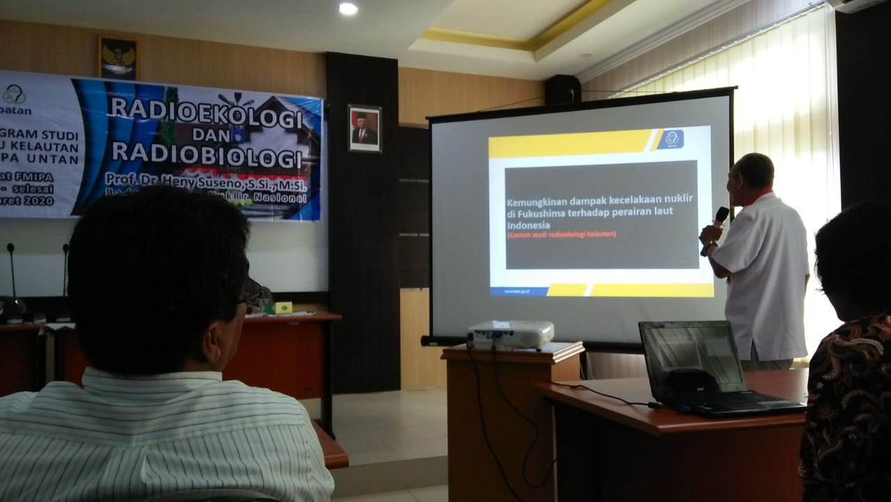 Fakultas Matematika dan Ilmu Pengetahuan Universitas Tanjungpura (FMIPA Untan) gelar Kuliah Umum bersama Tim Pusat Teknologi Keselamatan dan Radiasi (PTKMR) Badan Tenaga Nuklir Nasional (BATAN). Bertemakan “Radioekologi dan Radiobiologi”, kuliah umum ini dilaksanakan di Ruang Rapat Senat FMIPA Untan, Rabu (04/03/2020).