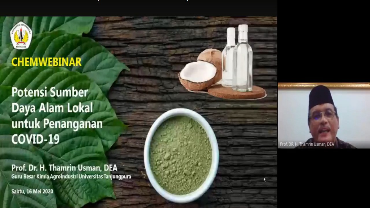 Program Studi Magister Kimia Fakultas Matematika dan Ilmu Pengetahuan Alam Universitas Tanjungpura (FMIPA Untan) gelar Chemwebinar yang bertemakan “COVID-19: Sebuah Tantangan dalam Membangun Peradaban” pada Sabtu, 16 Mei 2020. Seminar daring tersebut dilaksanakan menggunakan Google Meet pada pukul 09.00-12.00 WIB (16/05/2020).