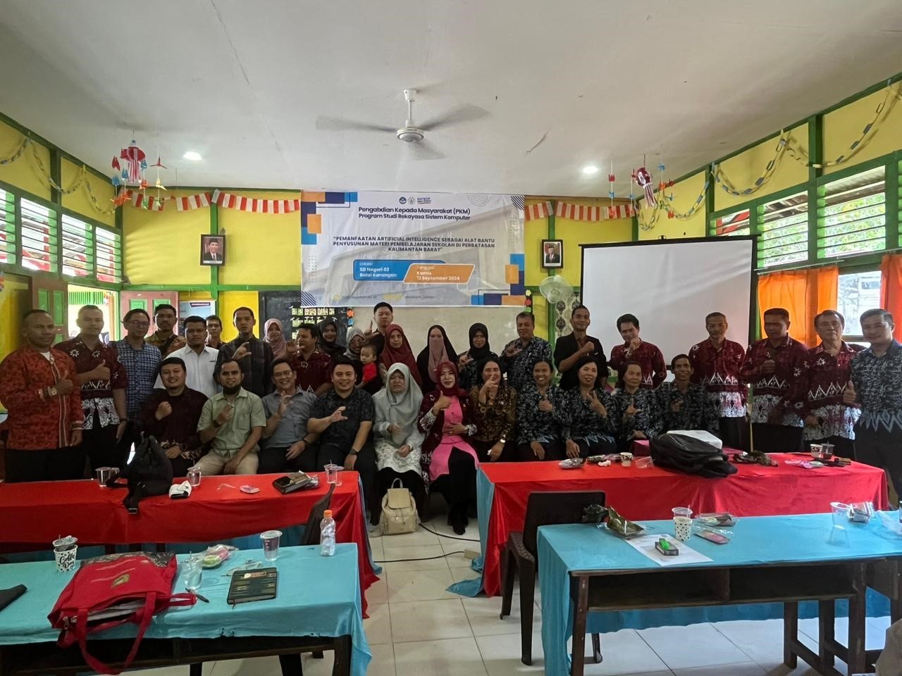 Pemanfaatan kecerdasan buatan (Artificial Intelligence/AI) sebagai alat bantu dalam penyusunan materi pembelajaran di sekolah memiliki potensi besar untuk meningkatkan kualitas pendidikan, terutama di daerah perbatasan yang seringkali dihadapkan pada tantangan aksesibilitas dan ketersediaan sumber daya. Kegiatan Pengabdian Kepada Masyarakat (PKM) ini bertujuan untuk memenuhi tri darma perguruan tinggi dengan menyediakan kontribusi yang berkelanjutan bagi masyarakat sekaligus membantu para guru dalam memanfaatkan tools AI. Pelaksanaan kegiatan PKM pada tanggal 12 September 2024 berjalan dengan lancar dan mendapat sambutan positif dari pihak SD Negeri 03 Balai Karangan. Kegiatan diawali dengan sambutan dari perwakilan dosen Prodi Rekayasa Sistem Komputer yang menjelaskan latar belakang, tujuan, dan harapan dari program PKM ini. Dalam sambutan tersebut, disampaikan bahwa teknologi AI yang dikembangkan merupakan inovasi yang diharapkan dapat mempermudah guru dalam menyusun materi yang sesuai dengan kebutuhan siswa dan kurikulum sekolah. Kepala Sekolah SD Negeri 03 Balai Karangan juga memberikan sambutan, menyatakan antusiasme atas program ini dan mengucapkan terima kasih kepada Universitas Tanjungpura atas kontribusi dan kolaborasi yang terjalin.