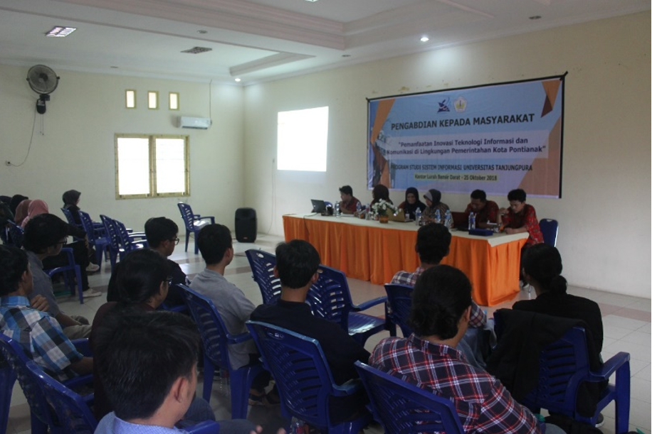 Pada hari Kamis tanggal 25 Oktober 2018 di Aula Kantor Kelurahan Bansir Darat dilakukan kegiatan Workshop Penggunaan Sistem Informasi Kelurahan Bansir Darat yang ditujukan kepada para Pegawai Kelurahan Bansir Darat Kota Pontianak. Kegiatan ini bertujuan agar sumber daya manusia (SDM) yang mengoperasikan pelayanan itu memahami dalam memberikan pelayanan kepada masyarakat. Trainer penggunaan Sistem Informasi ini adalah salah seorang dari tim PKM program studi Sistem Informasi yaitu Syahru Rahmayuda, M.Kom salah satu Dosen Program Studi Sistem Informasi FMIPA Untan. Kegiatan ini memberikan materi secara teknis penggunaan Sistem Informasi Kelurahan Bansir Darat Kota Pontianak.