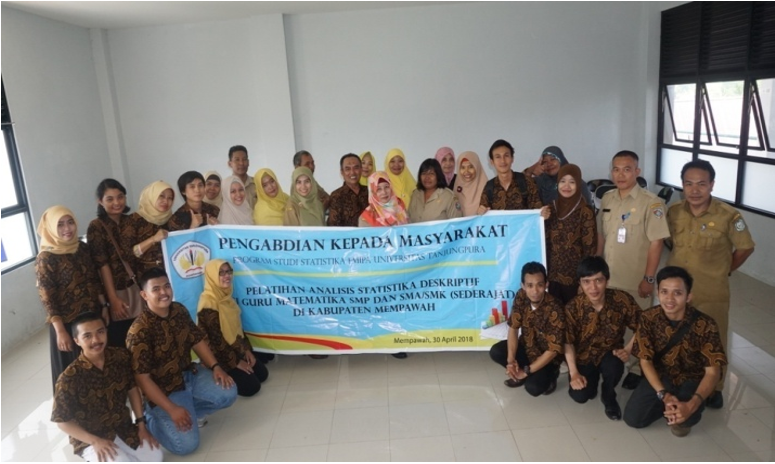 Bertempat di SMAN 1 Mempawah Hilir, Program Studi Statistika FMIPA Untan mengadakan kegiatan pelatihan analisis statistika deskriptif bagi guru matematika SMP dan SMA/SMK sederajat di Kabupaten Mempawah Kalimantan Barat, Senin (30/04). Kegiatan ini merupakan bentuk pengabdian Program Studi Statistika kepada masyarakat.