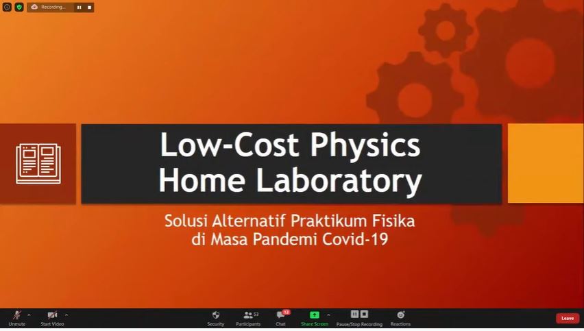 Ia menuturkan bahwa model pembelajaran yang akan disosialisasikan dalam acara PKM ini adalah model Low-Cost Physics Home Laboratory sebagai solusi alternatif pratikum fisika di masa pandemi COVID-19 untuk guru fisika SMA sederajat. Sesi pertama ini berlangsung selama 2 jam, pukul 08.00-10.00 WIB.
