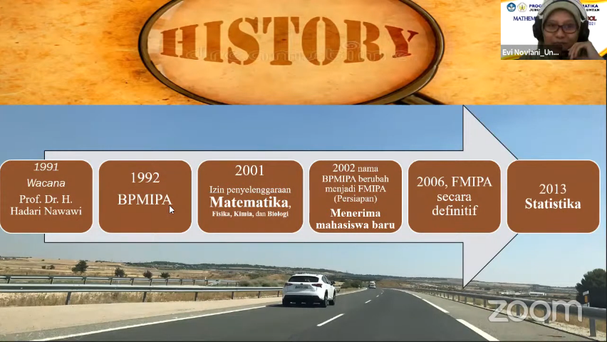 Program Studi Matematika Fakultas Matematika dan Ilmu Pengetahuan Alam Universitas Tanjungpura (FMIPA Untan) selenggarakan webinar Mathematics Goes to School. Acara yang diikuti oleh siswa/i SMA sederajat di Kalimantan Barat itu diadakan secara daring via Zoom Meeting dan disiarkan secara langsung di Channel Youtube Matematika Untan, Senin (16/3/2021).