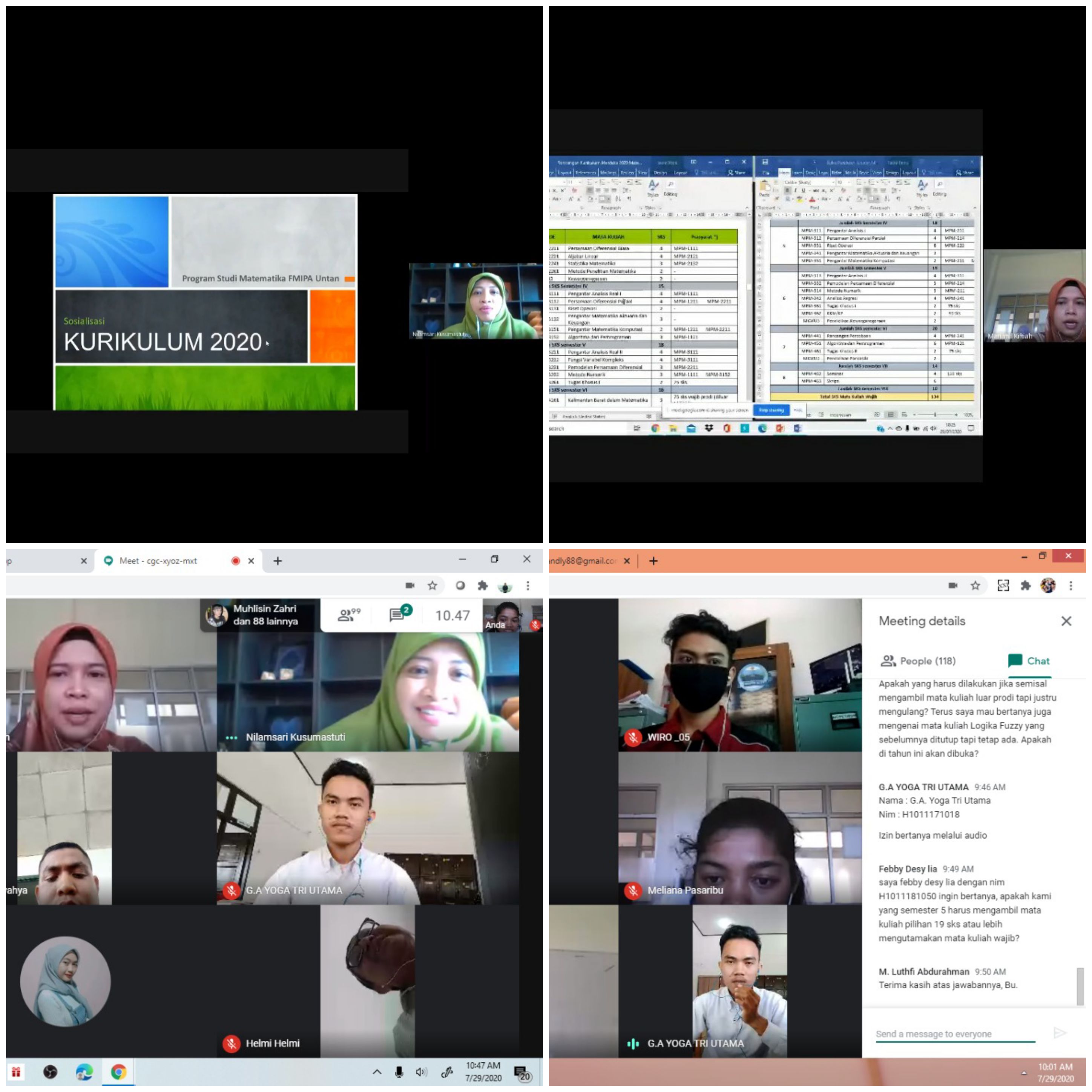 Program Studi Matematika Fakultas MIPA Universitas Tanjungpura mengadakan sosialisasi kurikulum melalui google meet pada Rabu, (29/07). Sosialisasi ini merupakan agenda akhir dari rangkaian kegiatan evaluasi dan peninjauan kurikulum guna menyusun Kurikulum 2020.