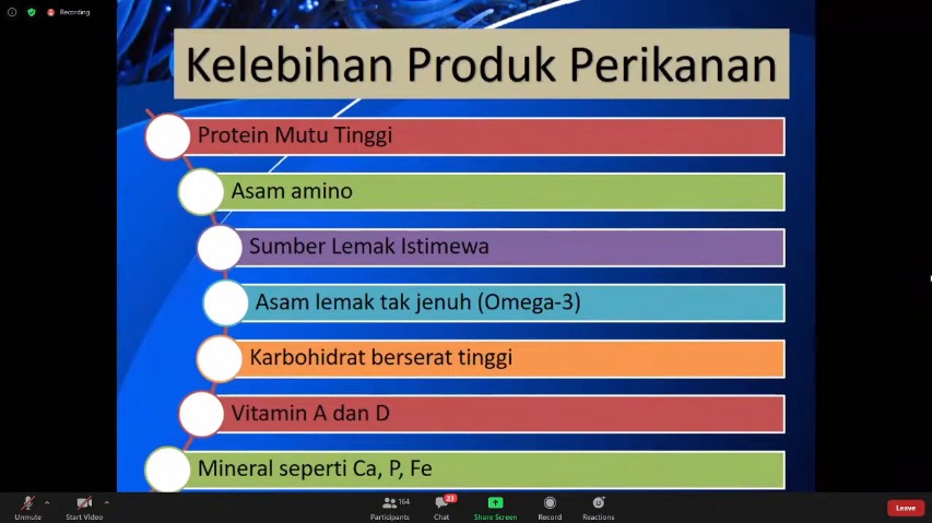 Ia berharap kegiatan webinar ini juga dapat menjadi sarana promosi ketahanan pangan pada bidang perikanan dan produk-produknya Menurut hematnya, promosi makan ikan untuk meningkatkan nilai gizi dan imun di masa pandemi harus semakin gencar digaungkan.