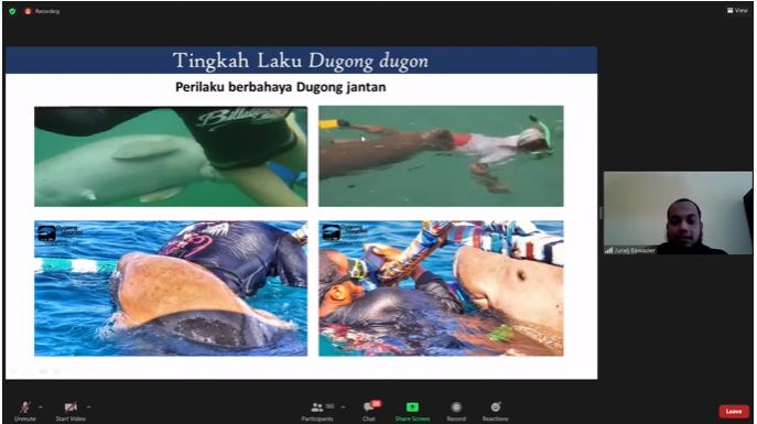 Dalam slide presentasinya, Juraij menjelaskan tentang sejarah evolusi Dugong, habitat dan perbedaanya dengan Manatee. Penerbit "Panduan Monitoring Dugong dan Lamun di Indonesia" itu juga menjelaskan morfologi Dugong dan caranya makan lamun.