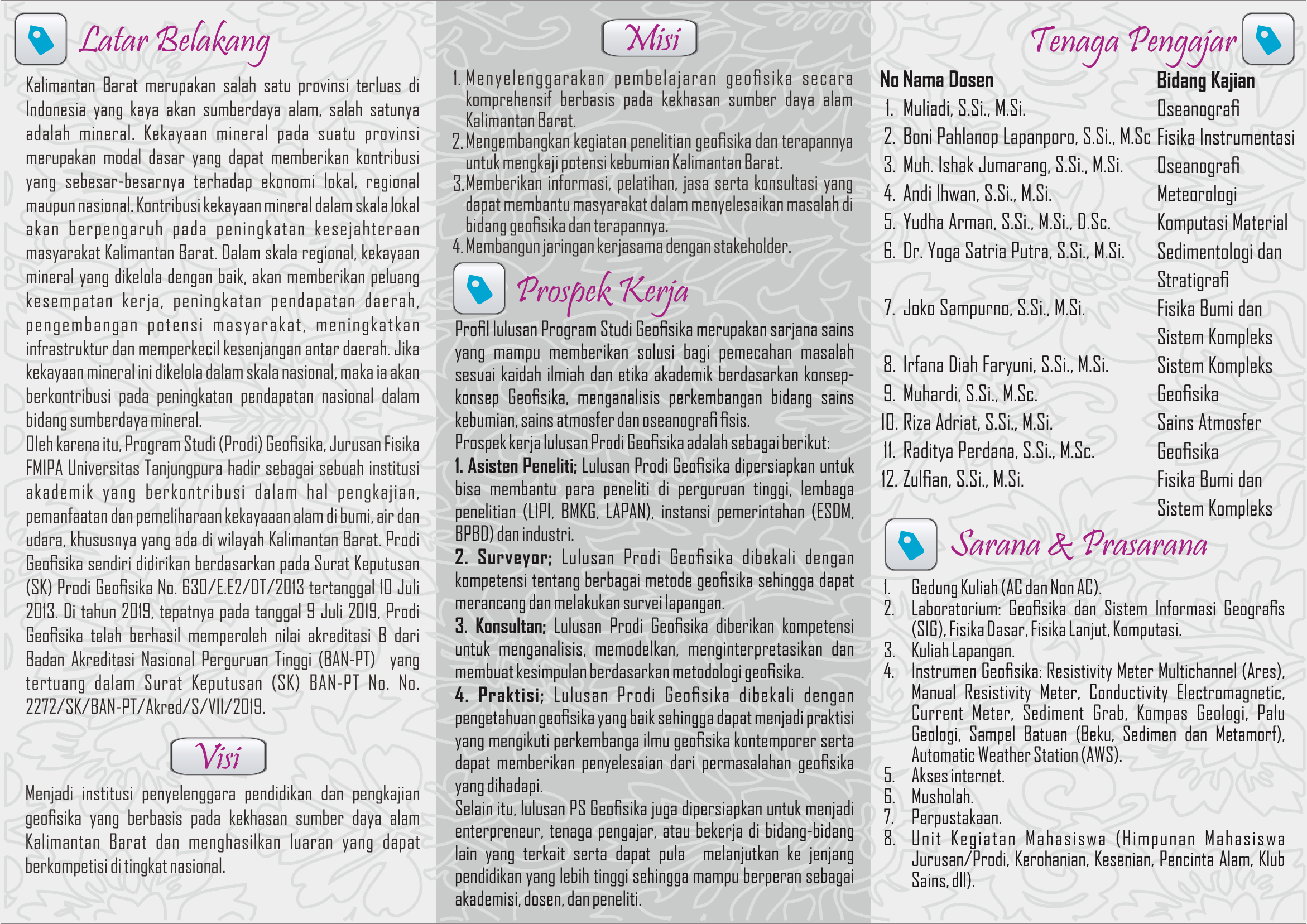 - Menyelenggarakan pembelajaran Geofisika secara komprehensif berbasis pada kekhasan sumber daya alam Kalimantan Barat,